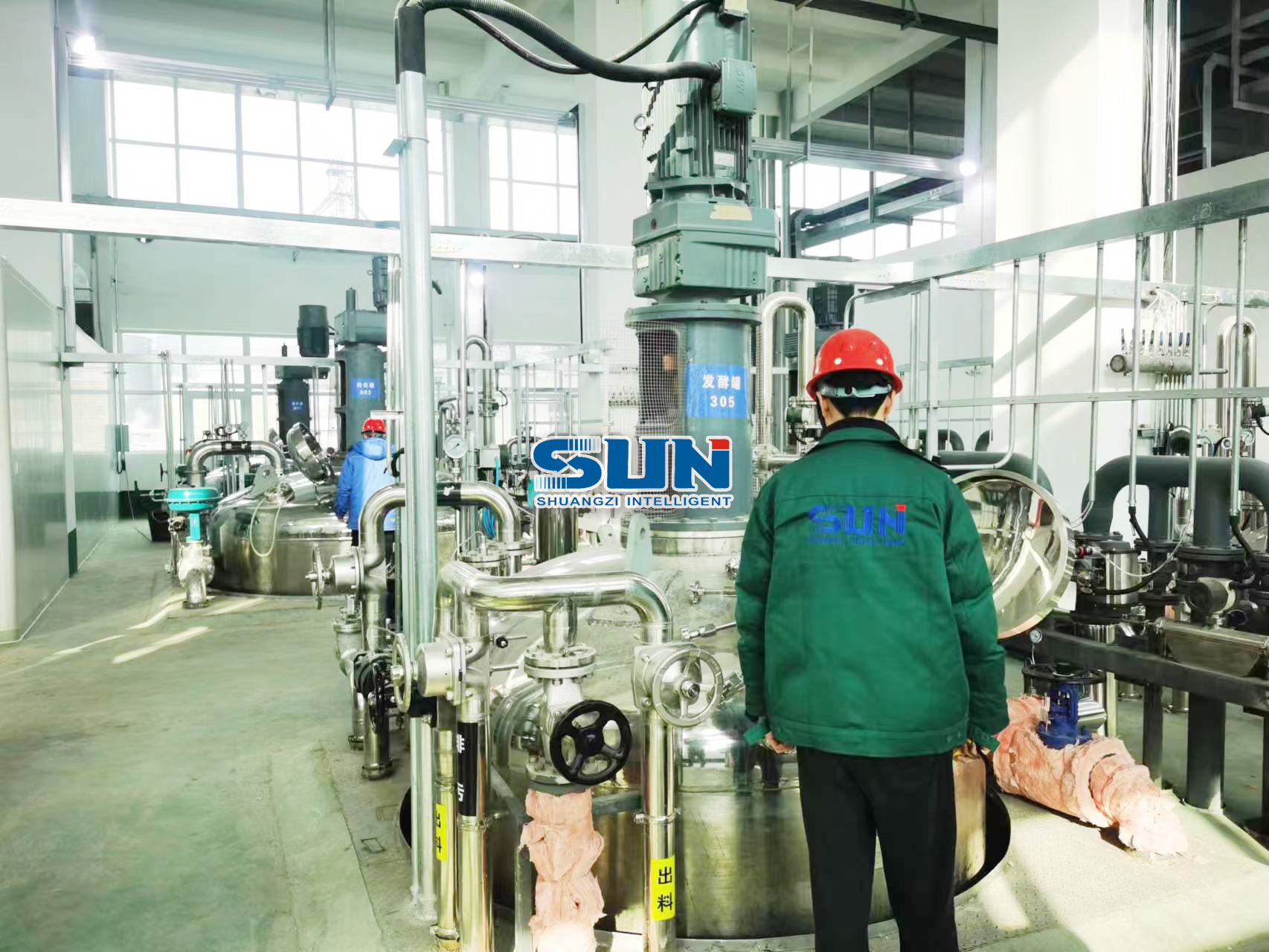 Система резервуаров для ферментации глюкуронида в основном включает в себя семенные резервуары емкостью 200 л, семенные резервуары объемом 2000 л, ферментационные резервуары объемом 20 м³ и ферментационные резервуары объемом 50 м³. Данные виды оборудования оснащены механическими мешалками, а детали, контактирующие с материалами, изготовлены из материала S30408, а также вспомогательным оборудованием, отвечающим производственным потребностям. Материал амплифицируется шаг за шагом, и весь процесс ферментации полностью автоматизирован. В процессе ферментации достигается полностью автоматический контроль температуры за счет внутреннего теплообменного устройства оборудования. После завершения ферментации проверяется окончательный выпуск продукта.